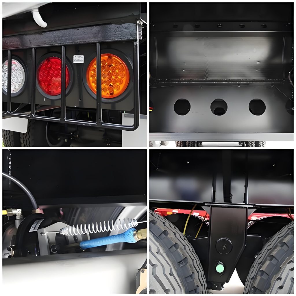 Key connection parts are made of wear-resistant alloy materials to reduce wear caused by long-term friction. It is equipped with high-quality hydraulic outriggers, which provide stable support and fast telescoping speed, facilitating the fixing of the vehicle body during equipment loading and unloading. The entire vehicle’s pipelines are treated with anti-corrosion wrapping, adapting to complex environments such as muddy construction sites and rainwater, reducing the risk of component rust and corrosion, and decreasing the frequency and cost of later maintenance.