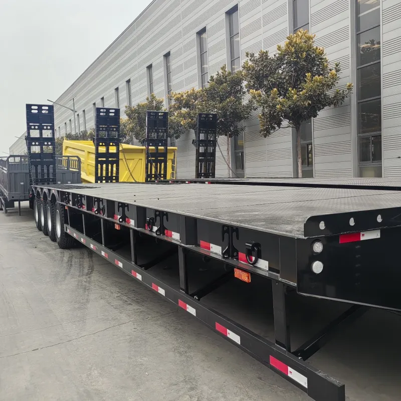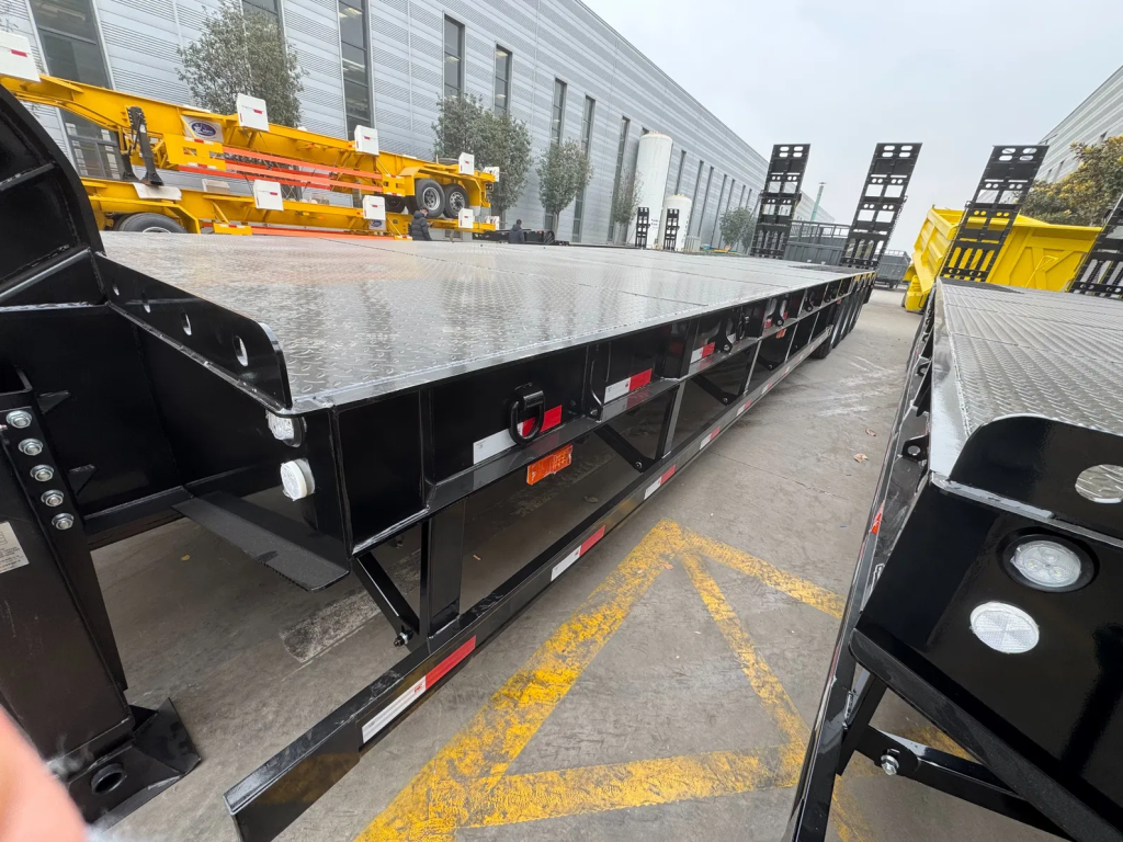 Adopting a 950mm low-deck design, the total cargo height can be controlled within the 3.8-4.0m road height limit in most African countries, eliminating the need for applying for special traffic permits and reducing transportation delays. Equipped with a hydraulically foldable rear ramp (maximum load capacity of 80 tons), heavy equipment such as excavators and crawler cranes can drive directly onto the deck. The loading/unloading time for a single piece of equipment is shortened to within 30 minutes, which is 50% more efficient than traditional trailers, making it suitable for high-frequency construction site transportation needs.